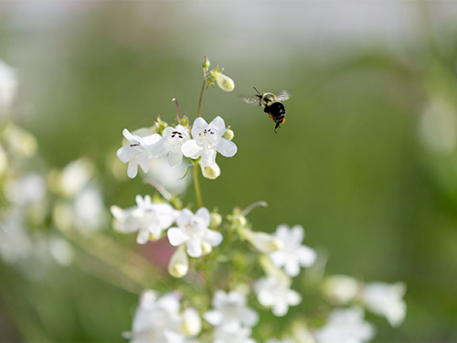Pollinators play a vital role in maintaining our ecosystems, economies and agriculture. Photo of bee in flight at the UT Gardens, Knoxville, by R. Lazarian, courtesy UTIA.